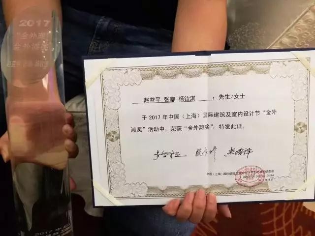 2017年4月27日,第十二屆“金外灘”獎頒獎典禮上,美迪大宅設計院榮獲三個設計類大獎:最佳色彩運用獎、最佳概念設計獎,并斬獲2017年賽事最高獎項——“金外灘獎”。