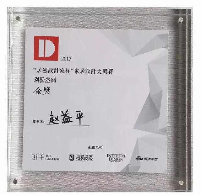 2017年6月16日,“居然設計家杯”家居設計大獎賽頒獎典禮在北京隆重舉行,在國內家居賽事中獎金最高、最具影響力的設計大賽上,美迪裝飾·美迪大宅設計院院長趙益平斬獲別墅空間金獎,美迪裝飾再添殊榮!