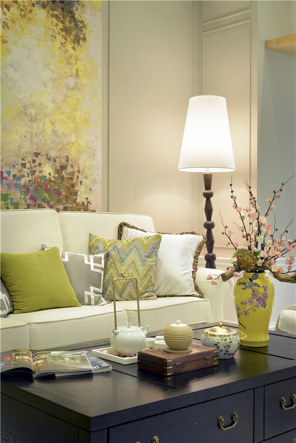 長(zhǎng)沙別墅裝修效果圖解析:客廳中以賦有立體感的墻面與壁紙搭配呈現(xiàn)出一面極具藝術(shù)美感的電視背景墻面,與之想對(duì)應(yīng)的沙發(fā)背景墻墻則顯得簡(jiǎn)約的多,以具有垂墜感的珠簾來(lái)襯托出簡(jiǎn)約卻具有設(shè)計(jì)感的沙發(fā)背景墻,與黃白的沙發(fā)座相呼應(yīng)。