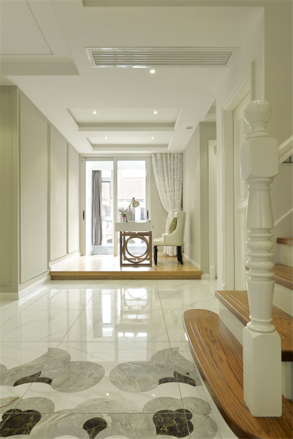 長(zhǎng)沙別墅裝修效果圖解析:以沙發(fā)一旁的過(guò)道設(shè)計(jì)來(lái)作為客廳與工作臺(tái)之間的區(qū)域劃分,同時(shí)也體現(xiàn)出了設(shè)計(jì)師想要表達(dá)的空間舞動(dòng)線條感,工作區(qū)的墻面上也同樣以收納式柜面設(shè)計(jì)來(lái)打造,讓這一區(qū)域不僅擁有了視覺(jué)擴(kuò)容感,還能夠用來(lái)做收納用,一舉兩得哦。