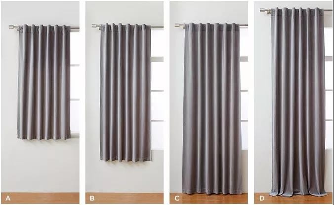 強勢總結:窗簾最好的操作就是—頂天立地,上及天花板,下及地板,仔細對比下圖,是不是D看起來更大。
