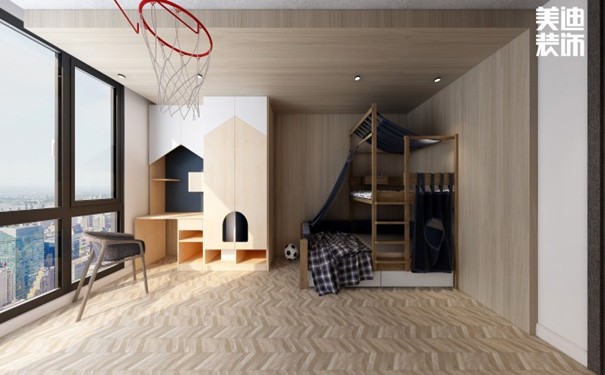 兒童房的設計原則中功能性也是不可少的。兒童房的設計應該是靈活多變的,集睡眠區、收納區、學習區與玩耍區于一體的兒童房是設計巧妙的兒童房,不僅更夠適應孩子的成長需求還非常實用。