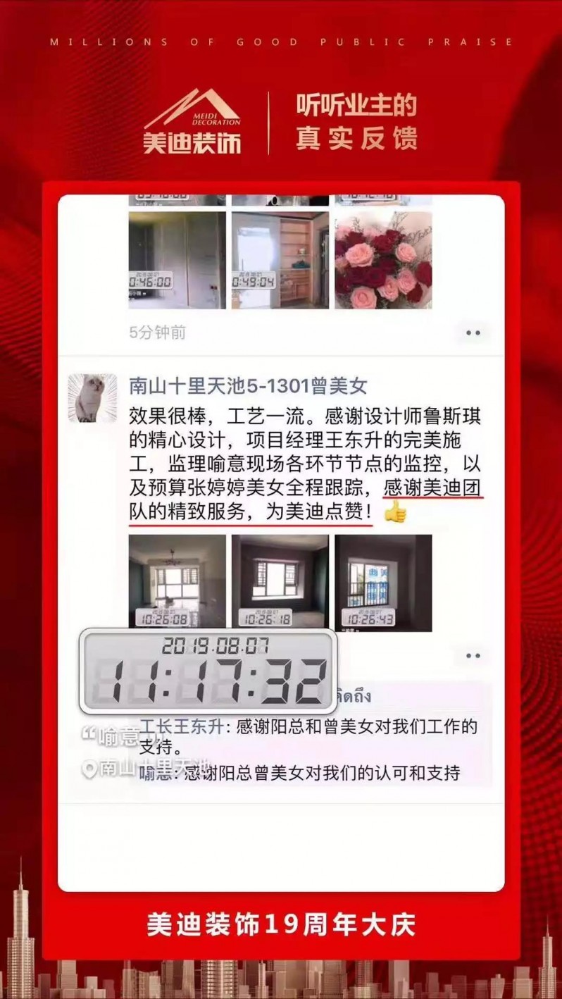 19年的成長,19年的歷練,美迪裝飾成為更多精英人士的放心選擇。感謝業主每一份信任與選擇;未來與你同行,美迪因你們更精彩!