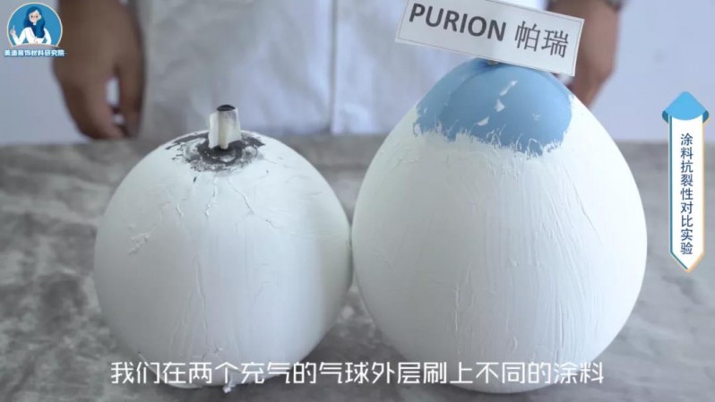測試方法:觀察法,我們將兩種品牌涂料涂在氣球上,靜置一夜等待涂料固化后,將氣球放氣,觀察放氣后氣球的變化情況。