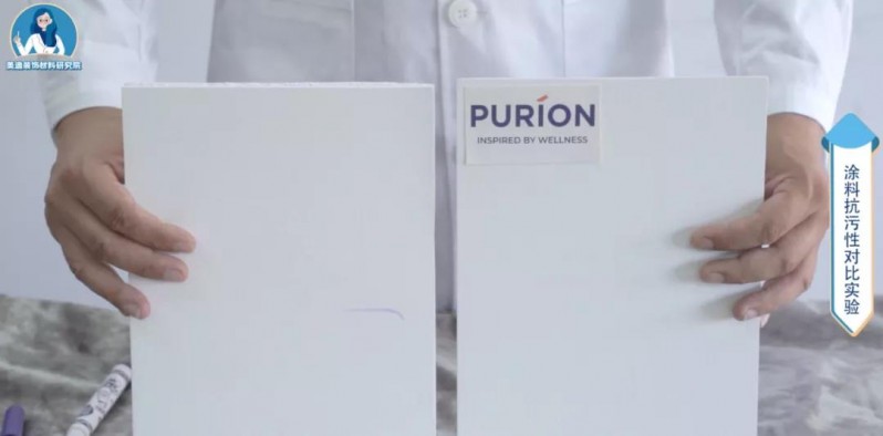 測試方法:觀察法,我們可以用畫筆在帕瑞樣板與其他品牌墻漆樣板上涂寫,用濕毛巾擦拭,觀察擦拭后樣板的狀態(tài)。