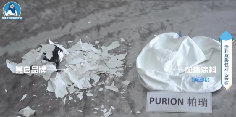 測評結果:從上圖我們可以看到,其他品牌在放氣過程中有明顯撕裂,破裂處有明顯粉末掉落;而帕瑞涂料漆膜完整,有較強延展性,施加外力也不易破裂和粉化,使用壽強于其他品牌。
