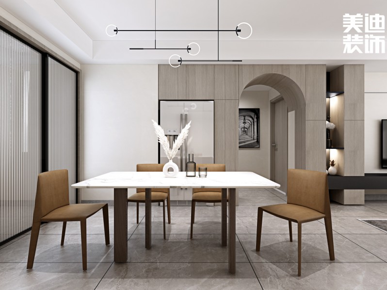 進門就是餐廳的話,由于大門太靠近這一側(cè)的墻壁,做大柜子會阻礙空間動線,所以只能在大門右側(cè)擺放小體量的鞋柜。