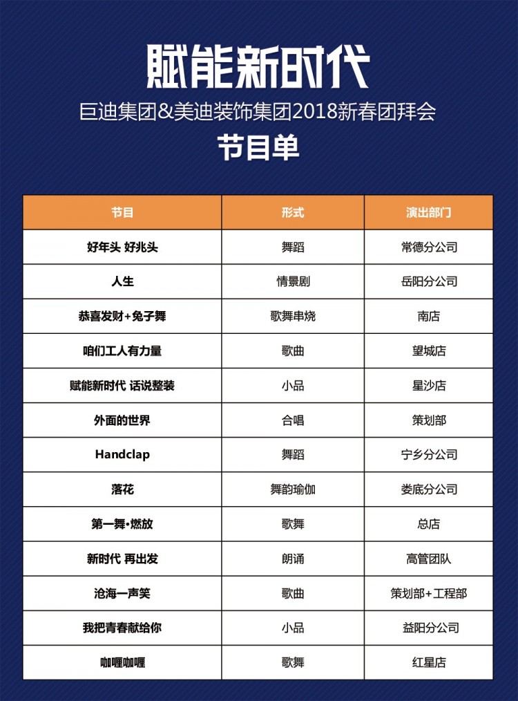 “賦能新時代” 巨迪集團&美迪裝飾2018新春團拜會暨2017年度表彰大會將于后天(2月5日)在圣爵菲斯大酒店舉行。為了給家人們獻上精彩的表演,各位美迪員工發揮集體智慧自編自導自演,精心準備了舞蹈、小品、歌曲、朗誦等好看好聽又好玩的節目,小伙伴們是不是超級期待呢?