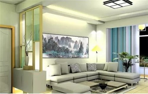 如果你非常喜好中國傳統文化的話,不妨在客廳背景墻上懸掛一幅精美的水墨畫,為家增添一些文化氣息,讓整個客廳變得淡然悠遠的同時,為家注入了更多的藝術氣息。