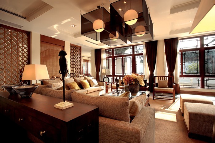 中式裝修,在空間上非常講究層次感,在能夠隔絕實現(xiàn)的地方,往往采用窗欞或者屏風進行隔斷,多以木構(gòu)架形式為主,古色古香,給人的是一種沉穩(wěn)、大氣之感。