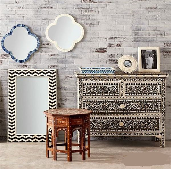 帶有骨木鑲嵌元素的家具再次流行起來,它們工藝復(fù)雜,往往會(huì)用到象牙、黃楊木、紅木、花梨木、牛骨、螺鈿、銅片、臘石等原料,造價(jià)自然不菲。