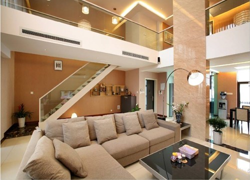 別墅常有多樓層,空間較充足,可以適當客廳數量,在一、二樓各設計一個客廳。錯層沉降式的設計,經常被用于別墅門廳到客廳的區域,它可以使空間更具層次和視覺沖擊的感覺,更具設計感,也使空間能夠更好的被利用。