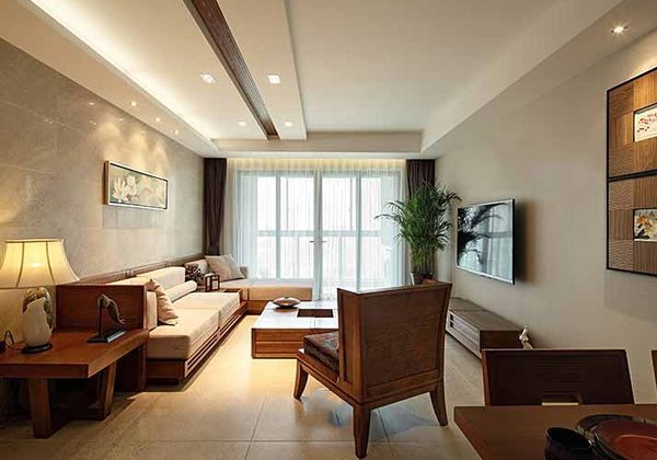 客廳是家人和親友相聚的地方,需要營造出溫暖、融洽的氣氛。圓形的燈飾、天花造型、以及裝飾品,在心理上給人以溫馨之感,正符合這樣的要求。