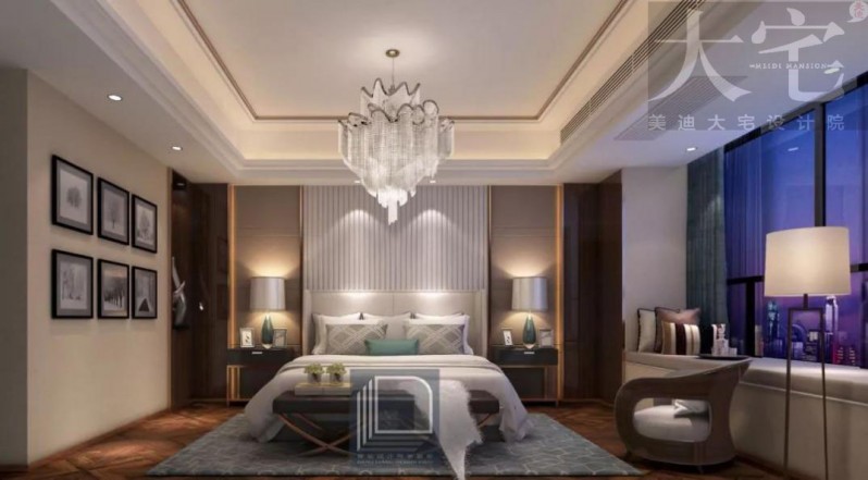 主臥是貫穿了木色、白色、灰色加少許黑色融合的暖色調,溫暖的色調能讓在外忙碌了一整天的人卸下疲憊,靜享生活的美好。還有那明亮空曠的飄窗設計,讓人一睜眼就能把湘江景色盡收眼底。
