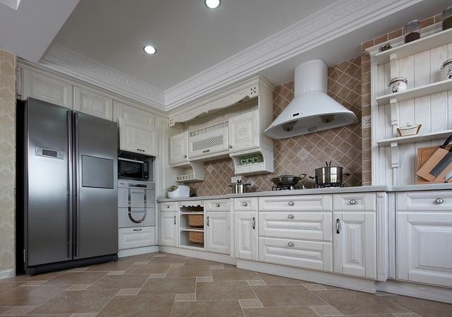 廚房風(fēng)水學(xué)上說,廚房是煙熏火燎的地方,溫度比較高,如果用冷色調(diào)的話就不會(huì)感覺那么熱。因此吊頂用最簡(jiǎn)單的白色就可以了。白色可以讓人忽略吊頂?shù)拇嬖冢粫?huì)覺得天花板低。