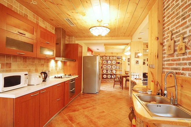 廚房的吊頂使用藍(lán)色就會(huì)顯得純潔可愛、惹人遐思。其次,在藍(lán)色的掩映下,廚房就顯得更加清新淡雅,富于裝飾味道。對(duì)于工作緊張的白領(lǐng)來說,藍(lán)色的廚房吊頂可以讓喧囂的心靈靠岸寧靜的港灣。