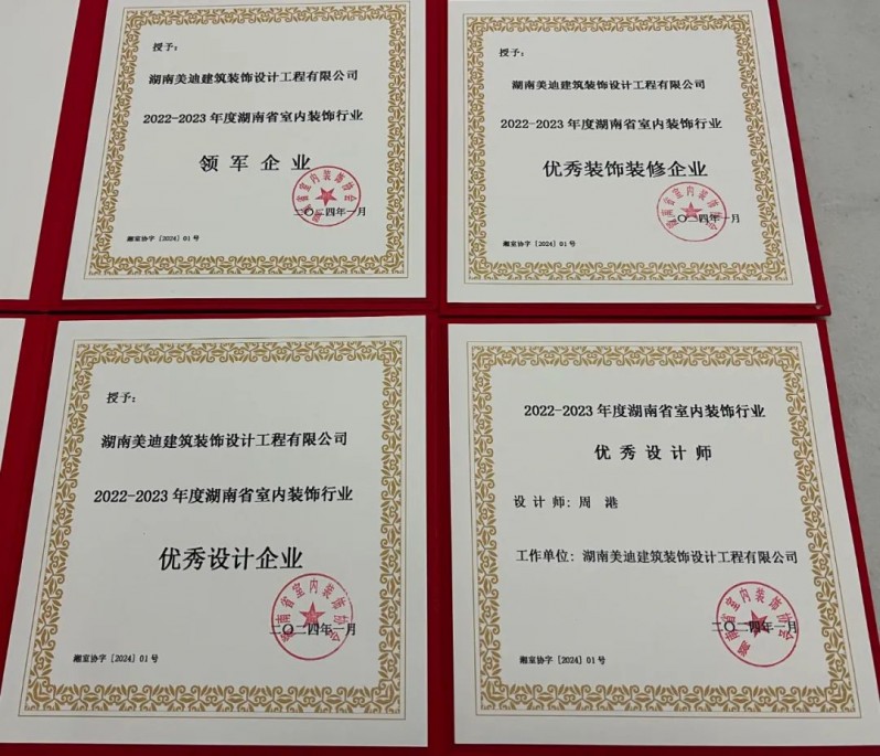 捷報頻傳|美迪裝飾榮獲“2022-2023 年度湖南省室內裝飾行業領軍企業”等多項行業大獎