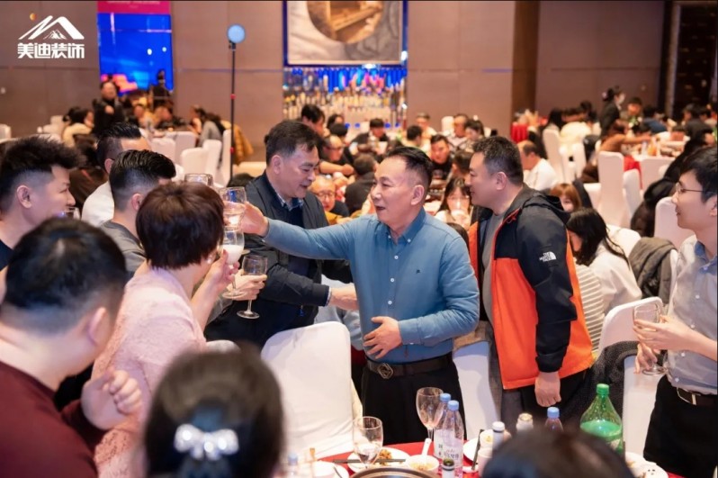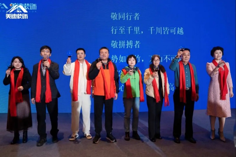 大會的最后,副董事長鐘成、總裁張曉帆、副總裁楚君、副總裁江濤、督察長徐立等領導上臺,為全場祝酒。他們舉杯共祝,感謝每一位美迪人的辛勤付出,并期待在新的一年里,大家能夠同心同行,再創佳績。