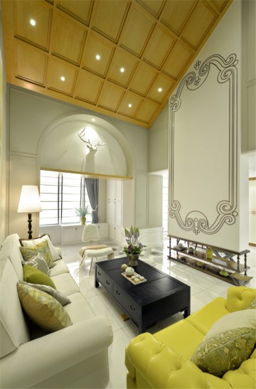 這間別墅空間中搶眼的黃、橘、綠,撞色上幾何圖騰與線性,給人視覺上帶來一定沖擊的同時,美觀且實用是設(shè)計師想要突出的重點。以下就請各位一同與小編來欣賞一下這套264平的長沙別墅裝修效果圖吧。  長沙別墅裝修效果圖解析:挑高空間的客廳中,房主選購了鮮艷色彩的家具放置于這一空間之中,墻面上則以充滿圓形圖案的石膏線和雕花來鋪貼整個墻面,與一旁暖色的窗簾紗幔都尤為相搭…