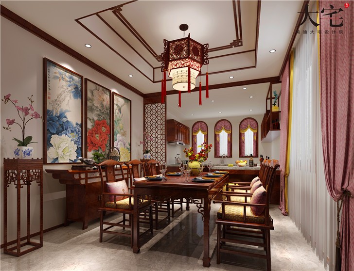 龍湖湘風原著300平美式風裝修案例圖—餐廳