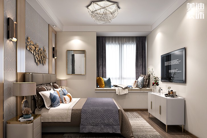 新華聯(lián)夢(mèng)想城109平港式輕奢風(fēng)裝修案例效果圖--臥室