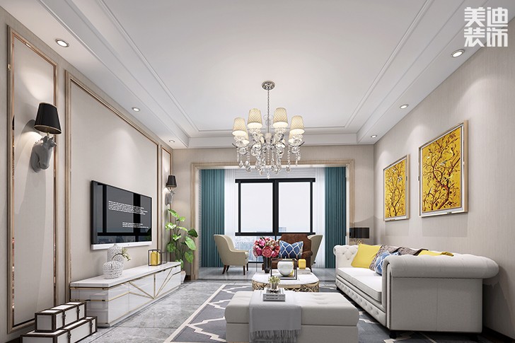 長房云時代120平港式輕奢風裝修案例效果圖--客廳