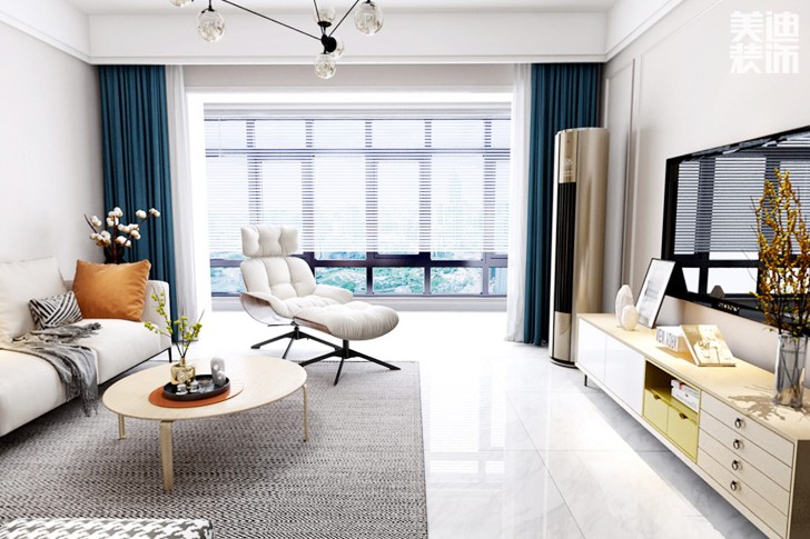 云頂梅溪湖100平米美式風(fēng)格裝修效果圖--客廳