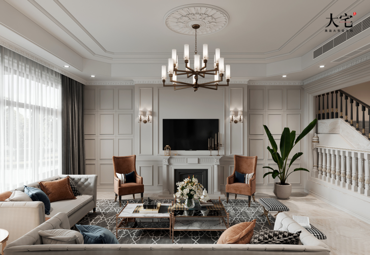 綠城高爾夫小鎮300平方米美式風格案例效果圖-客廳