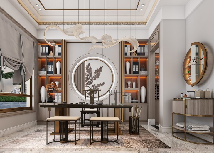 北大資源理想家園260平方米簡美風格案例效果圖-茶室