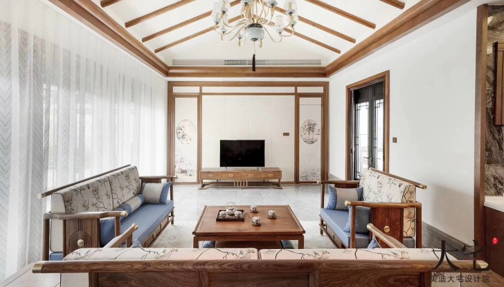 盧浮原著580平方米新中式風(fēng)格案例效果圖-客廳