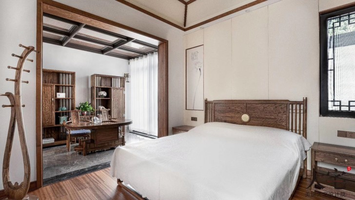 盧浮原著580平方米新中式風(fēng)格案例效果圖-臥室