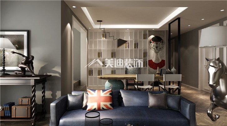 蘭亭灣畔125平港式風裝修案例圖—客廳