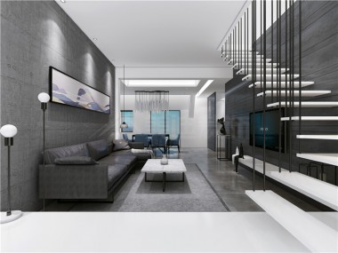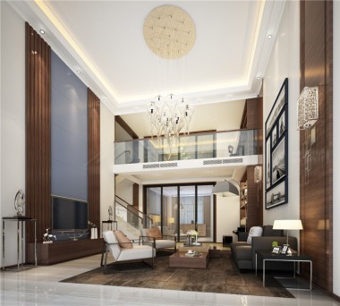 天麓商層165平后現(xiàn)代裝修案例圖—客廳