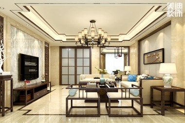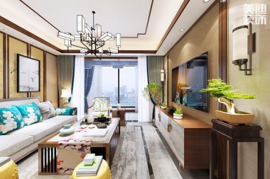 恒大御景天下130平米新中式風(fēng)格裝修案 ...