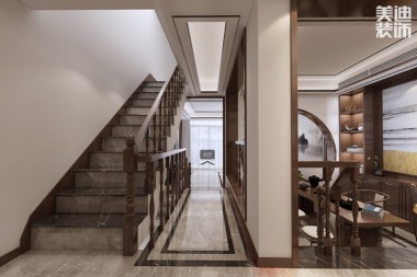 八方小區(qū)160平米新中式風(fēng)實景圖--過道