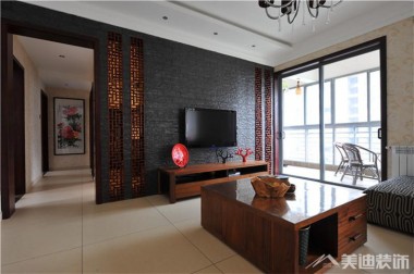 長沙陽光麗城中式裝修案例-客廳