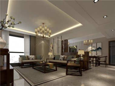 輝煌國際新中式風(fēng)裝修案例圖—客廳