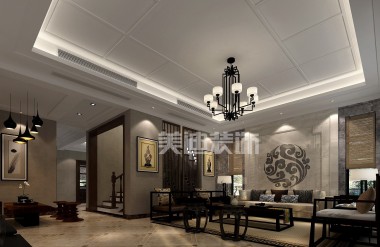 早安星城新中式風(fēng)裝修案例圖—客廳