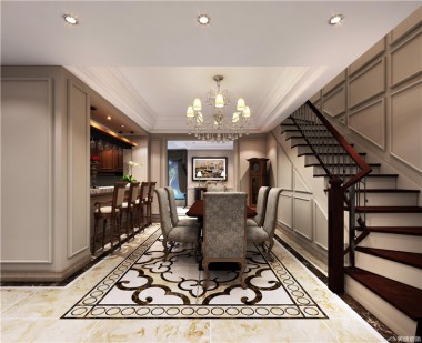 中糧北緯580平簡(jiǎn)歐風(fēng)裝修案例圖—餐廳