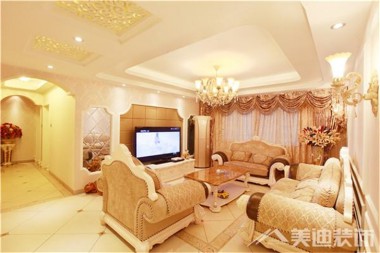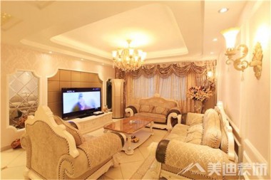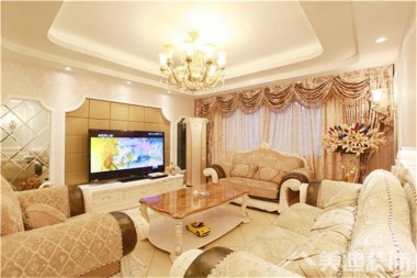 匯金城131平簡(jiǎn)歐風(fēng)裝修案例圖—客廳