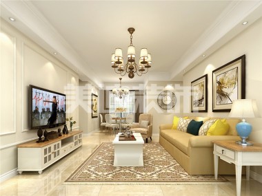 鈺龍天下91平簡歐風裝修案例圖—客廳