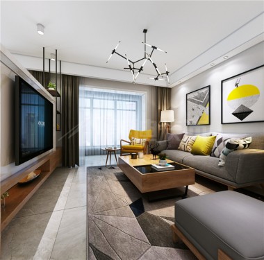 江山帝景95㎡北歐風(fēng)格案例效果圖—客廳