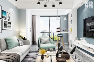 湘熙水郡清新北歐風(fēng)裝修案例圖—客廳