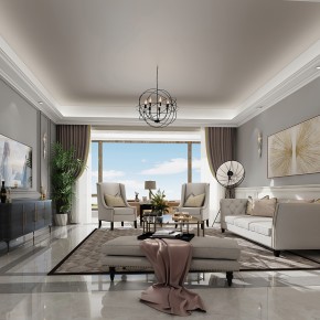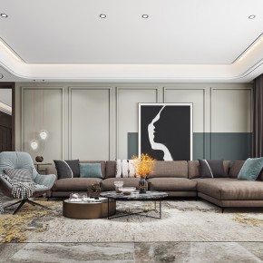 湘江壹號245平方米意式輕奢風格案例效果圖