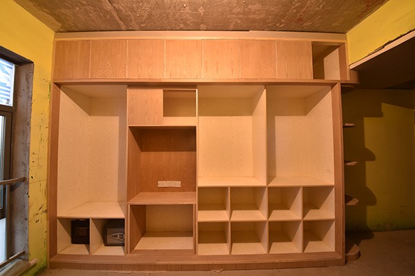 木制作柜體與墻面、地面縫隙間刷好防潮漆、貼好防潮膜,防止受潮開裂