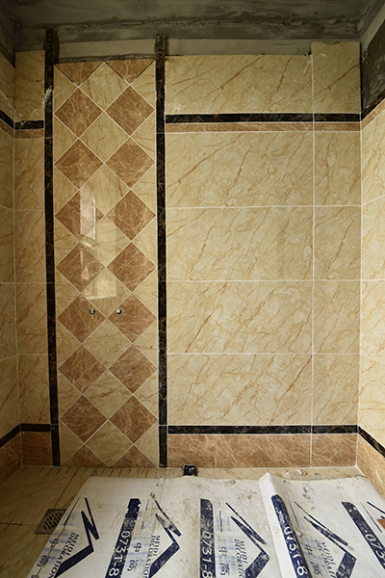 細節:洗手間里已經貼好了瓷磚,衛生間與水接觸最多,所以在衛生間鋪磚,就必須重視防水和防潮。啞光面或者是帶有凹凸造型的瓷磚是最佳選擇,其目的是防滑。其次,還要注意衛生間的地面應低于其他房間的地面10~20毫米。通常情況下衛生間地磚的鋪設保留1%的漏水坡度,地漏處最低,以利于排水。地磚接縫要粗細一致,與墻磚縫對齊。